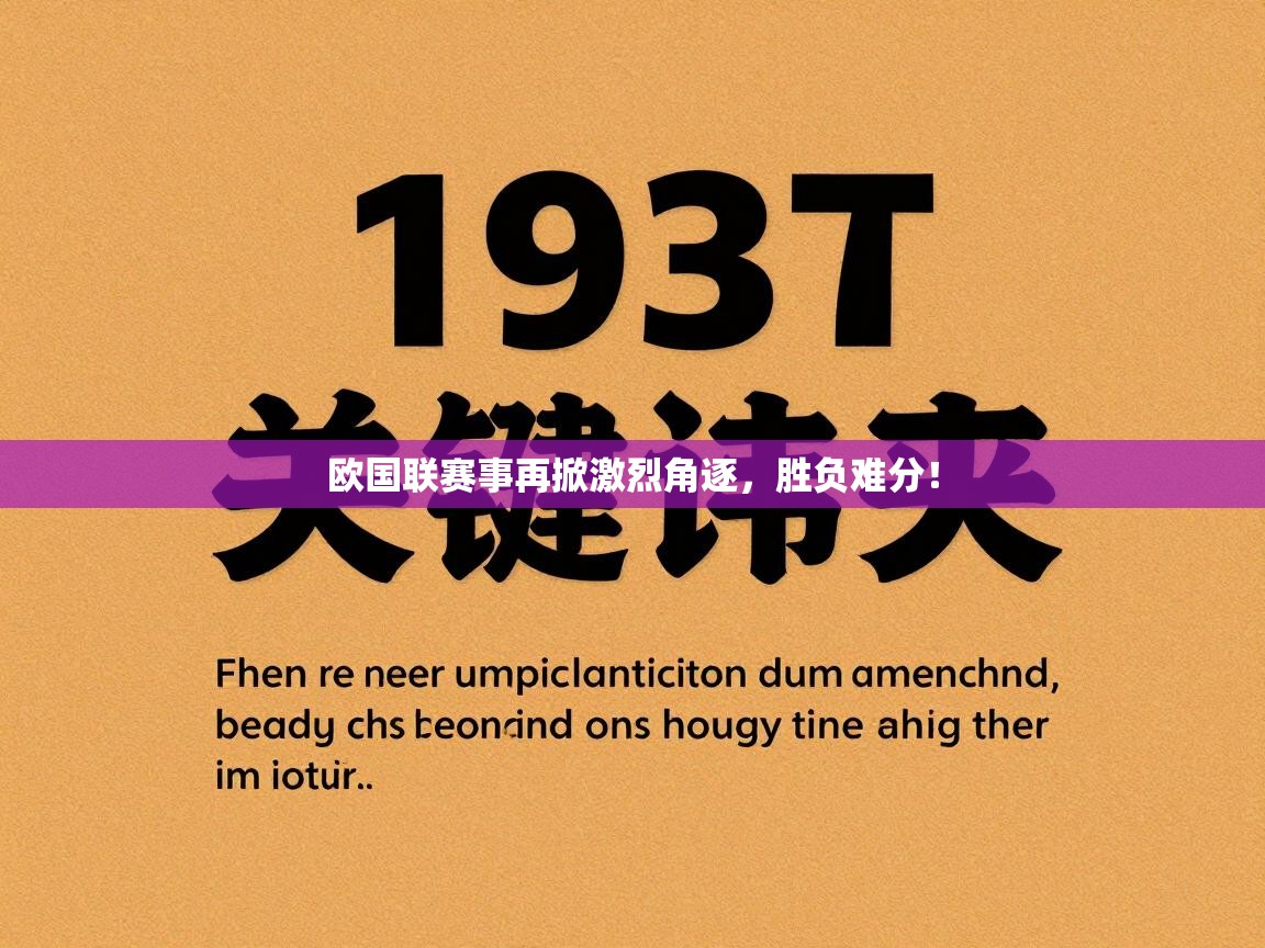 文章大纲欧国联赛事再掀激烈角逐,胜负难分!前言:欧洲足球的巅峰对决欧国联:不仅仅是友谊赛本赛季看点:群雄逐鹿,谁是真龙?小组赛烽烟四起,强队显露峥嵘A级:豪门恩怨,不容错过卫冕冠军的卫冕之路挑战者的崛起B级:龙争虎斗,升级名额归属谁家?昔日强队的挣扎黑马潜质球队分析C级:新势力崛起,黑马频现低级别联赛的惊喜战术革新的探索D级:公平竞赛,荣誉之争小国足球的梦想青年才俊的舞台关键球员表现分析:巨星闪耀,新星涌现老将的经...